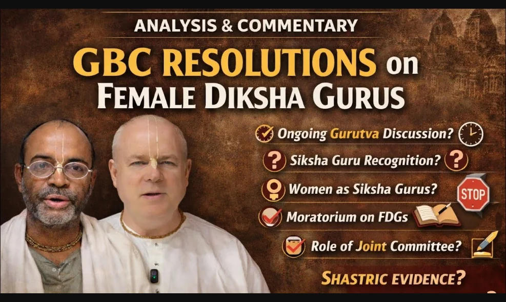 In this video, IISB Convenor Kṛṣṇa-kīrti Dāsaḥ and IISB Senior Scholar and author Śrīdhara Śrīnivāsa Dāsaḥ discuss the resolutions from the “Statement from the Executive Committee of the ISKCON Governing Body Commission on Vaiṣṇavī Dīkṣā Guru – GBC AGM 2026”, dated 14 February 2026.